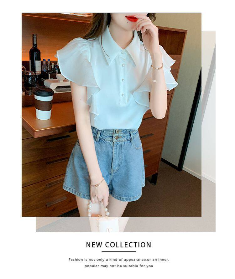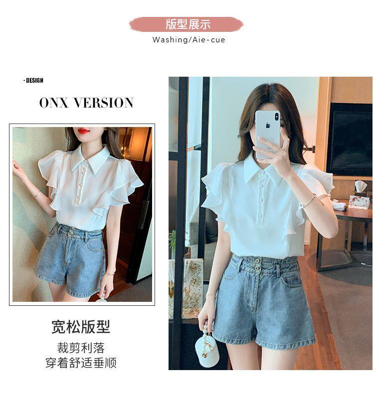 Шифоновая летняя рубашка, короткий рукав, по фигуре