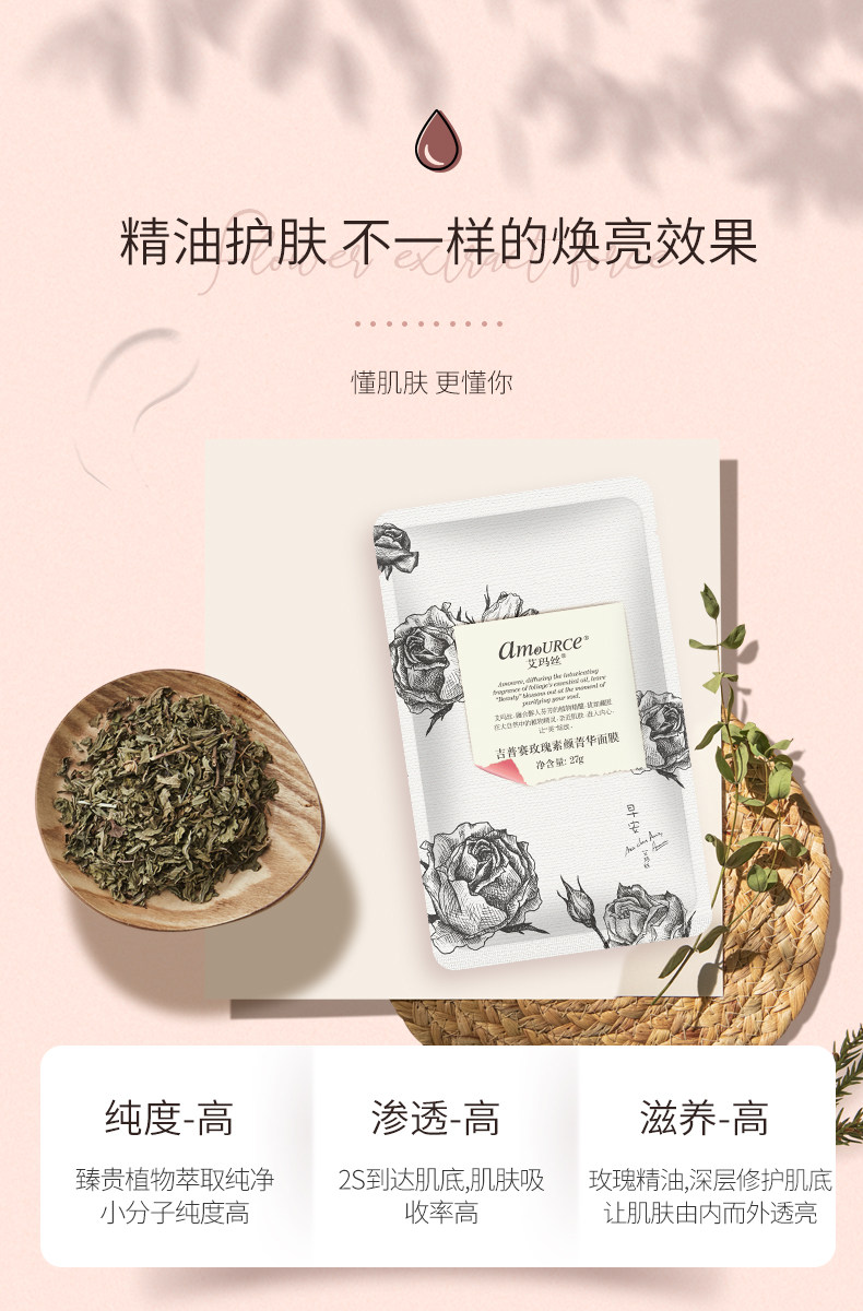 Увлажняющая осветляющая питательная маска для лица с розой в составе, 5 штук, осветляет кожу