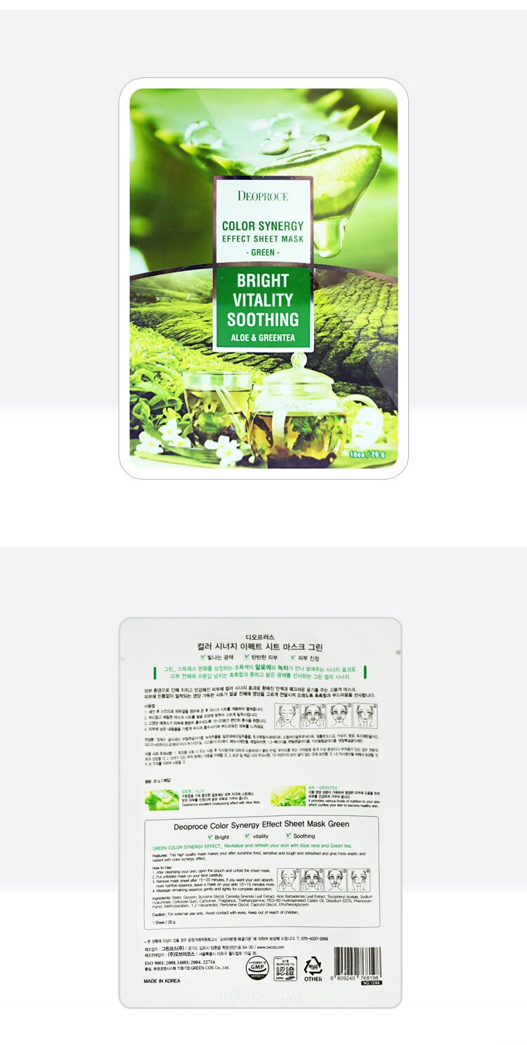 Новый продукт корейский Digneus deoproce алоэ вера зеленый чай с двойным эффектом маски Burshu Shushi может быть настоящей тишиной