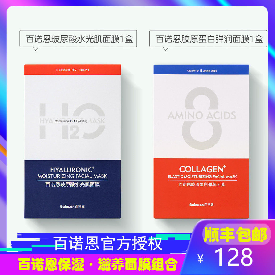 Маска для лица с гиалуроновой кислотой, коллаген на основе аминокислот, комплект, интенсивное увлажнение, 10 штук