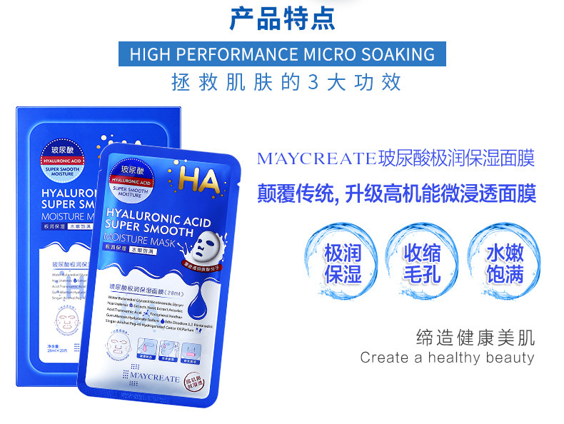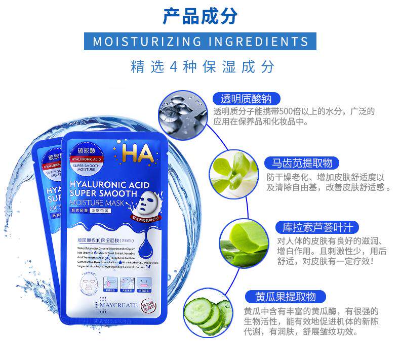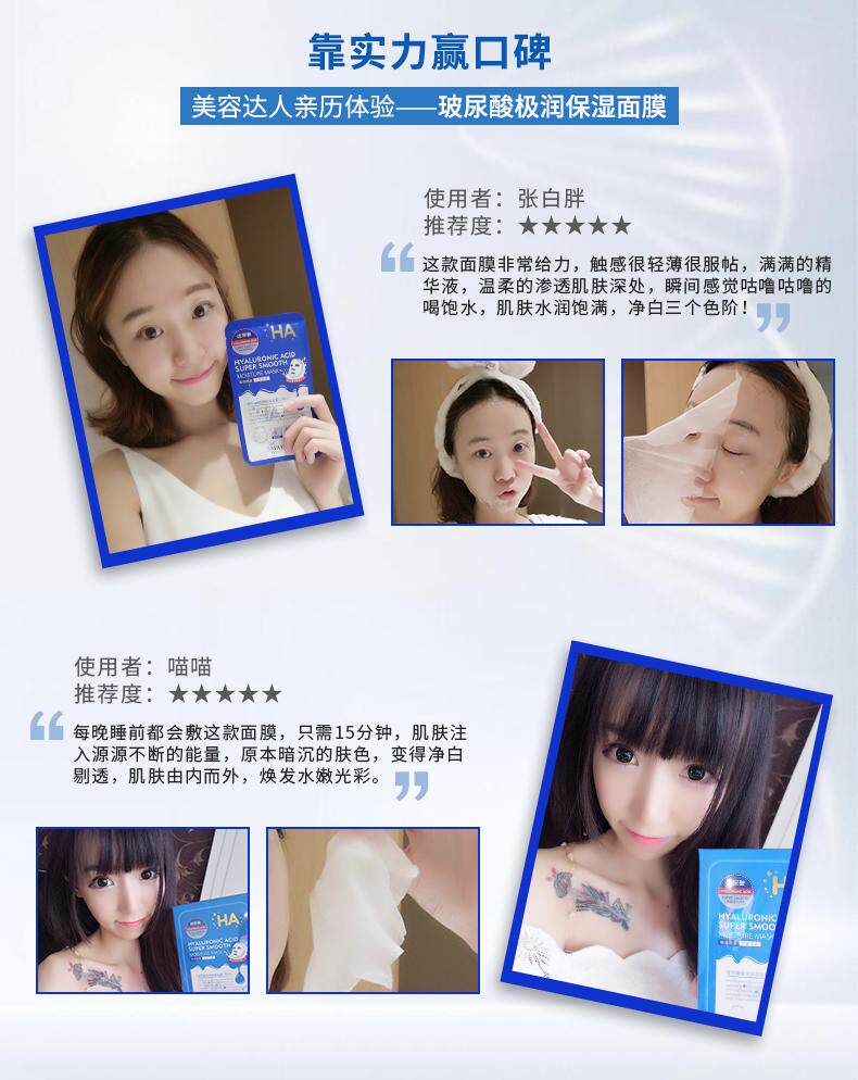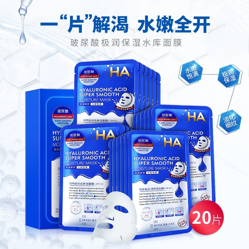Увлажняющая маска для лица с гиалуроновой кислотой, сужает поры, 20 штук