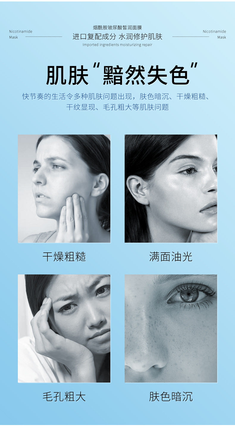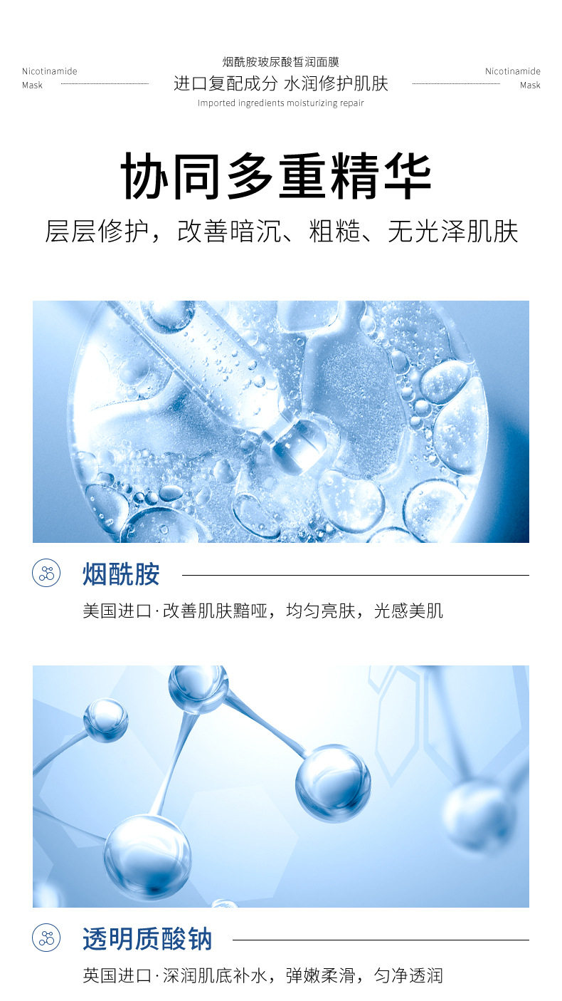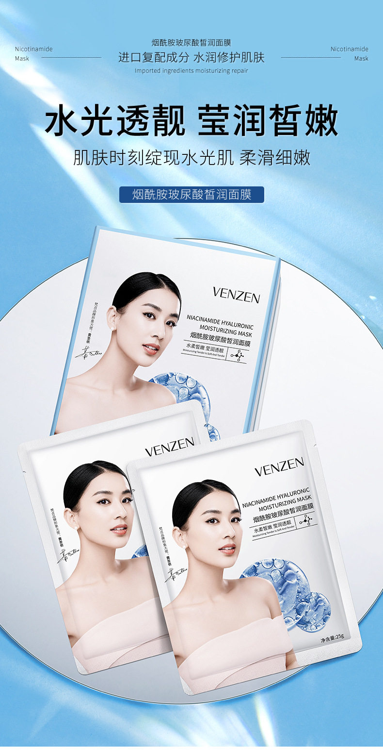 Осветляющая увлажняющая маска для лица содержит никотиновую кислоту с гиалуроновой кислотой, удаление веснушек, осветляет кожу