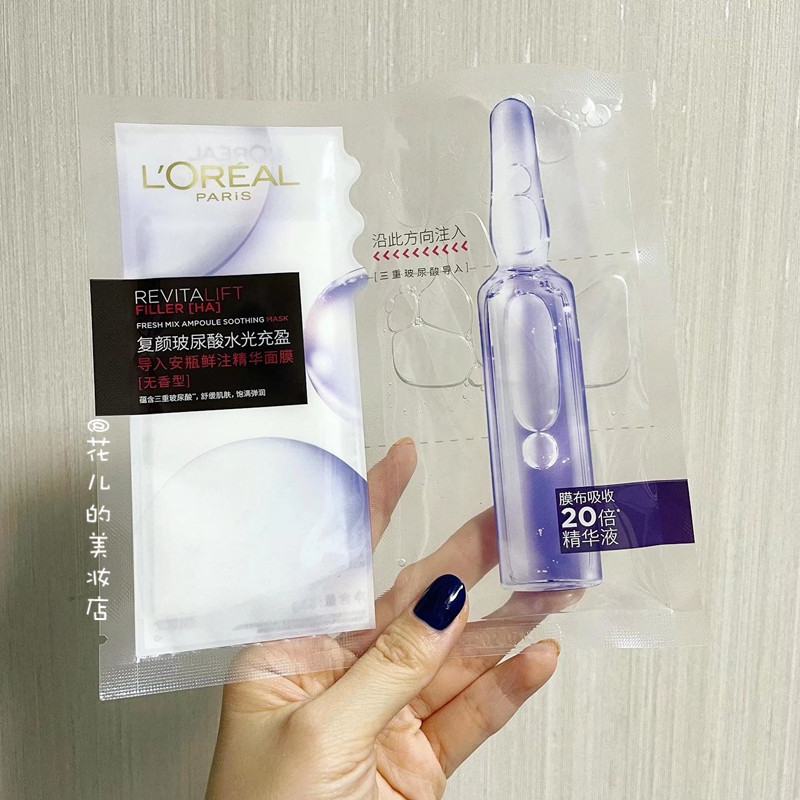 L'Oreal, эссенция с гиалуроновой кислотой в ампулах, ароматная маска для лица, модернизированная версия, интенсивное увлажнение, 33г