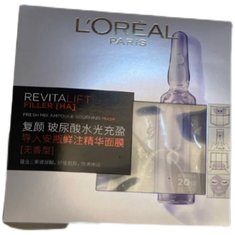 L'Oreal, коробка, увлажняющая маска для лица в ампулах, новая версия, 15 штук