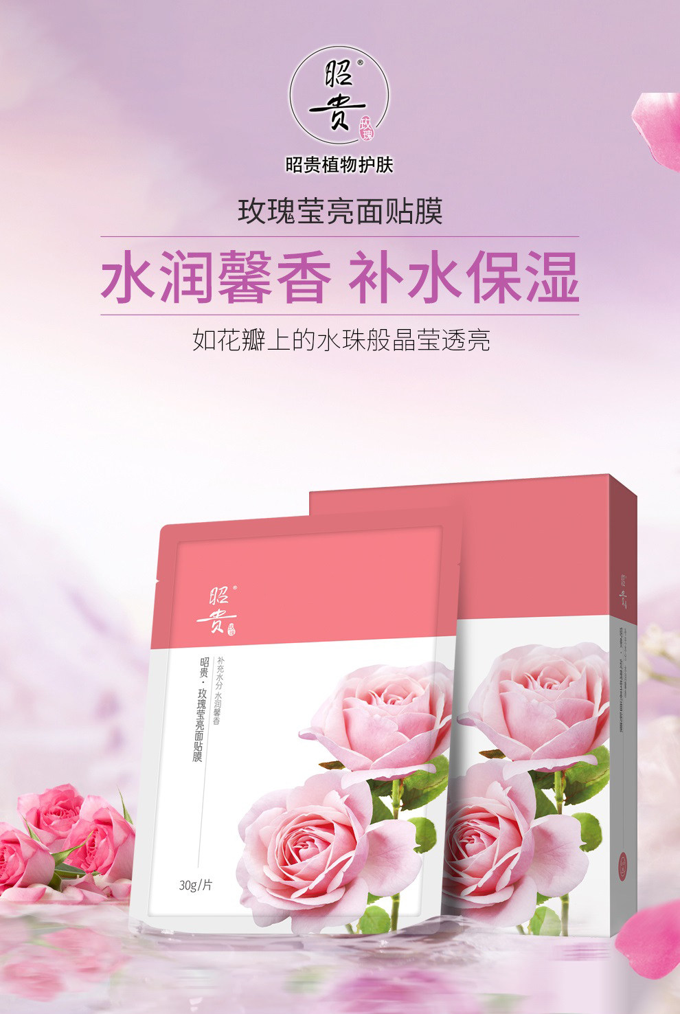 昭贵 Глянцевые наклейки с розой в составе, увлажняющий тонер, фруктовая освежающая маска для лица, 10 штук