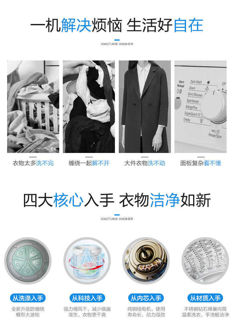 Полностью автоматическая стиральная машина с горячей сушкой небольшой аренда мини -студент -общежитие 4/10 кг, чтобы элюировать