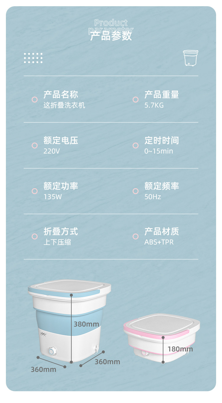 Мини -ультразвуковая складная стиральная машина Небольшой промывочный моторный