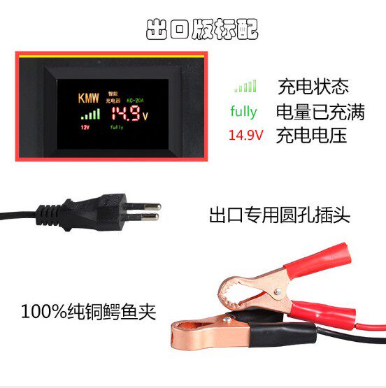 Умное зарядное устройство, автоматическая батарея, 12v, 20A, полностью автоматический