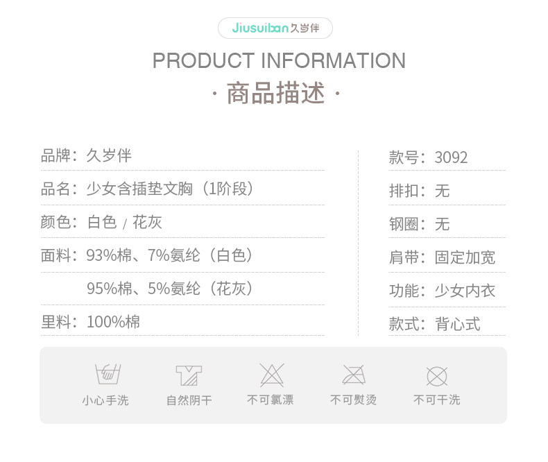 久岁伴 Подростковый бюстгальтер, нижнее белье для школьников и студентов, майка топ, бюстгалтер