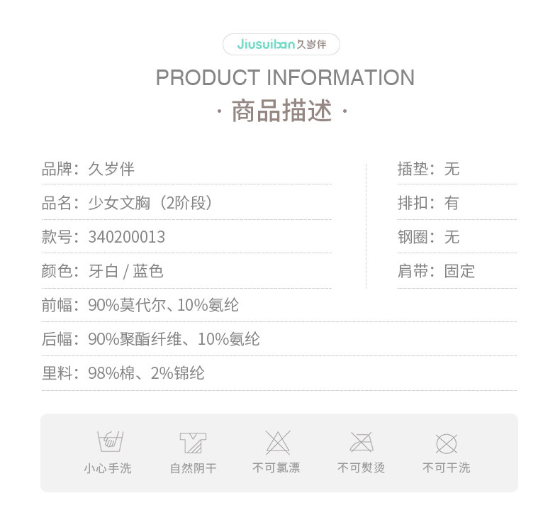 久岁伴 Нижнее белье, тонкий бюстгальтер-топ, противоударный бюстгалтер, для средней школы, подходит для подростков, 14 лет