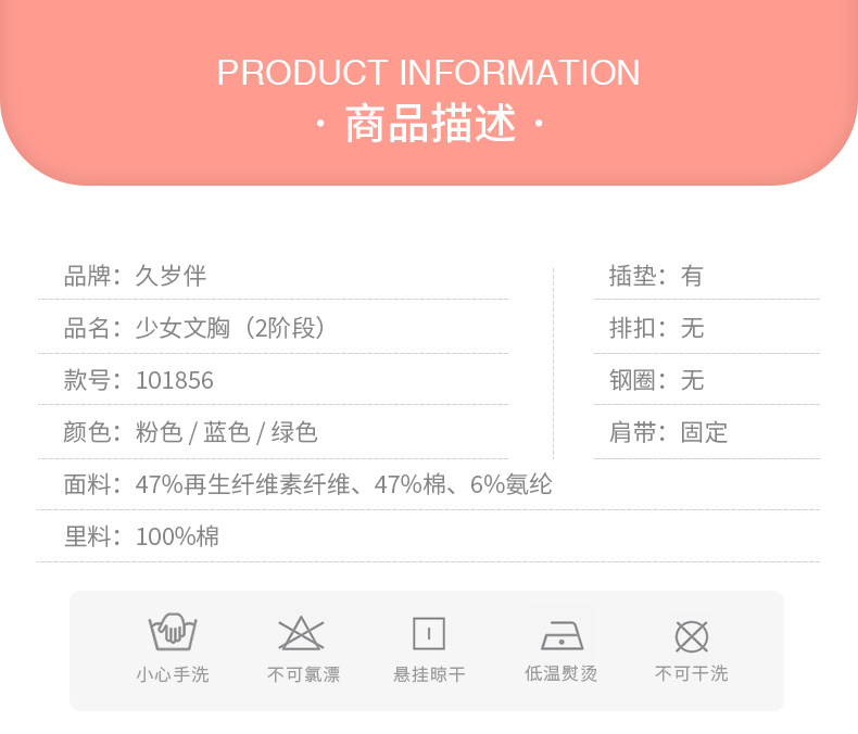 久岁伴 Бюстгальтер-топ для школьников и студентов, нижнее белье, бюстгалтер, подходит для подростков, для средней школы, 16 лет