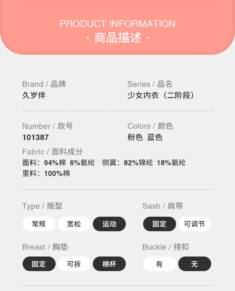 久岁伴 Нижнее белье, спортивный бюстгальтер-топ, тонкий летний подростковый бюстгальтер