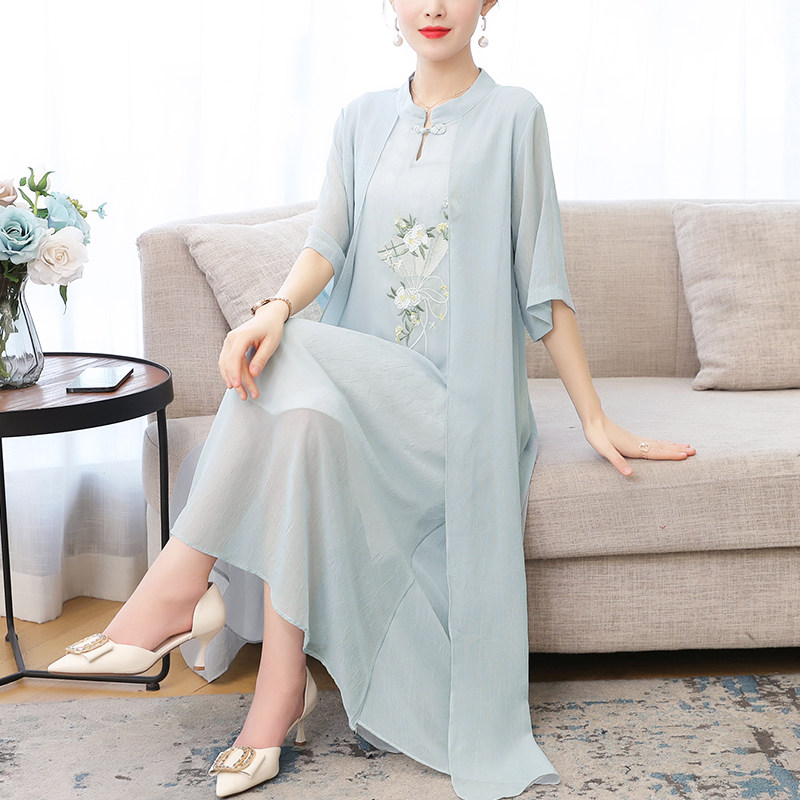 Шифоновое ципао, летнее легкое элитное платье для матери, китайский стиль, с вышивкой, коллекция 2023, в западном стиле