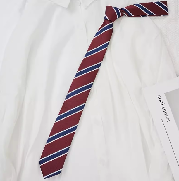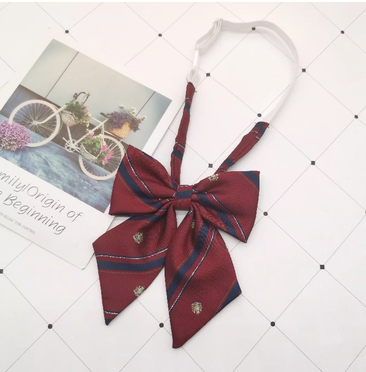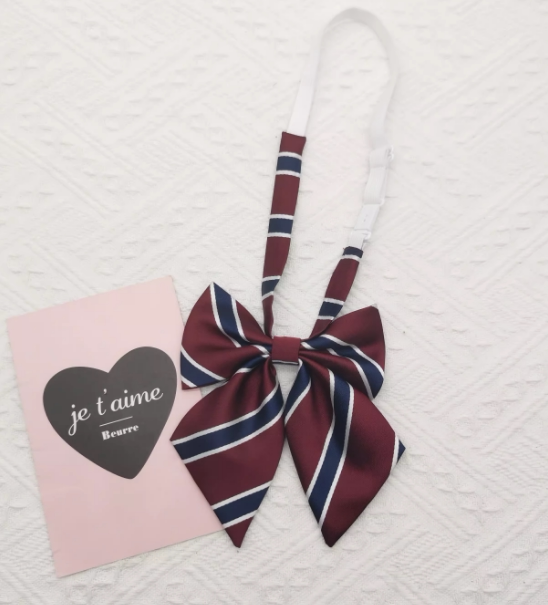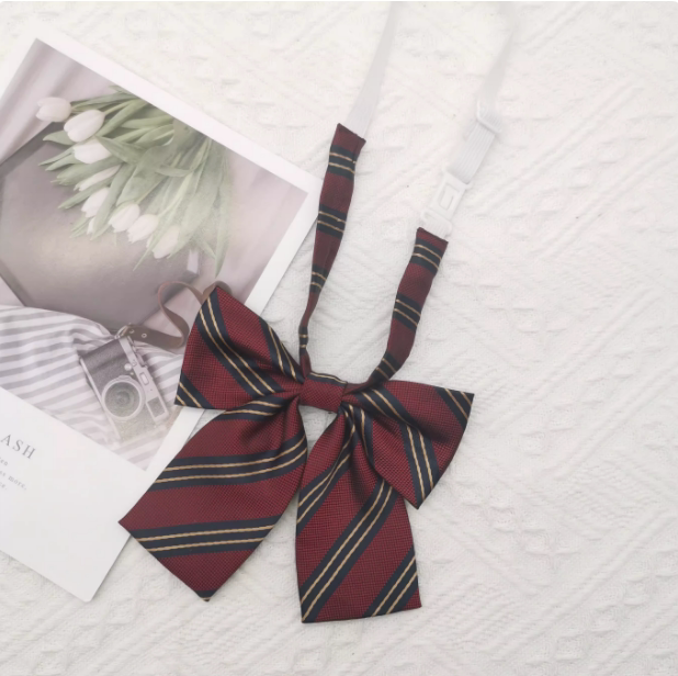 Красная японская школьная юбка, коричневый галстук, галстук-бабочка