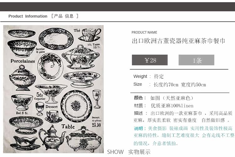 Выход из европейского чистого льняного антикварного фарфора
