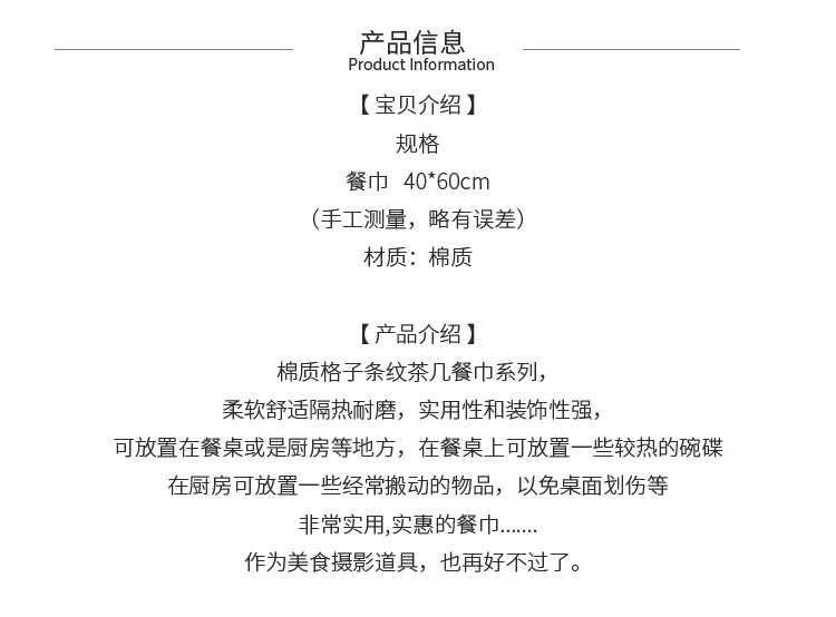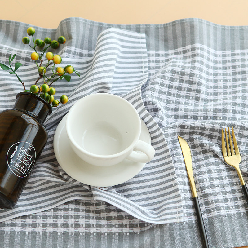 唯米 8330 Простая северная европейская полосатая клетчатая клетчатая хлопчатобумажная салфетка для салфетки чайная шарф фотография Фоина Фоновая ткань