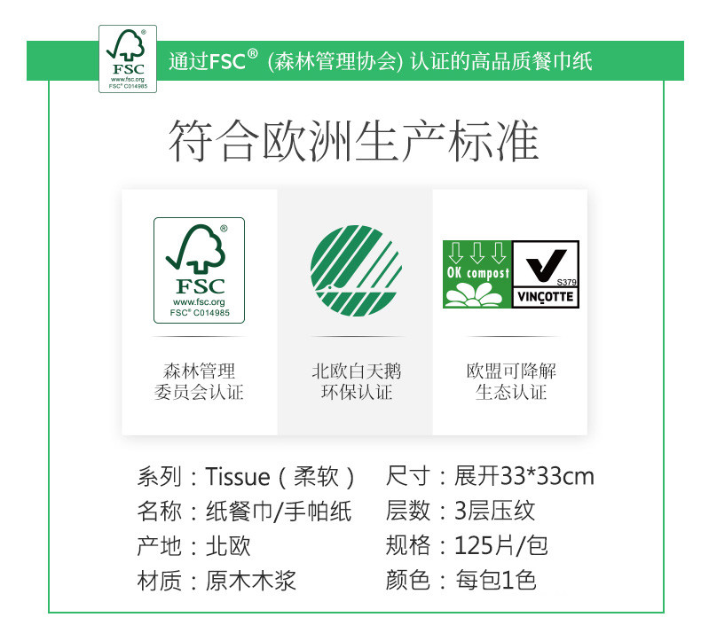 Импортные бумажные салфетки, 125 штук, 33см