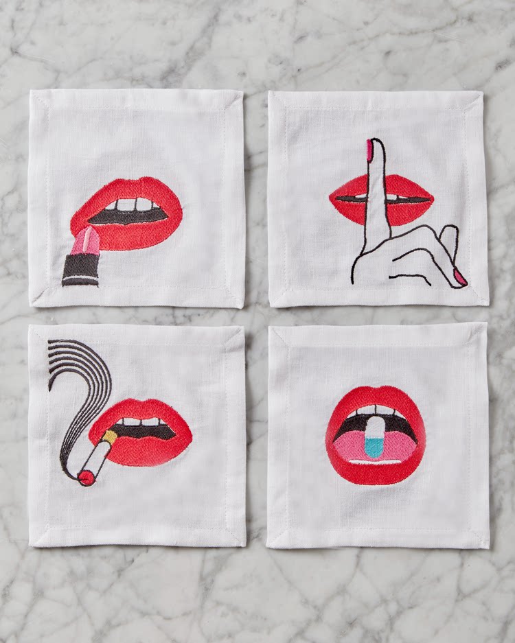 Jonathan Adler Designer Brand Вышитая красная губа.