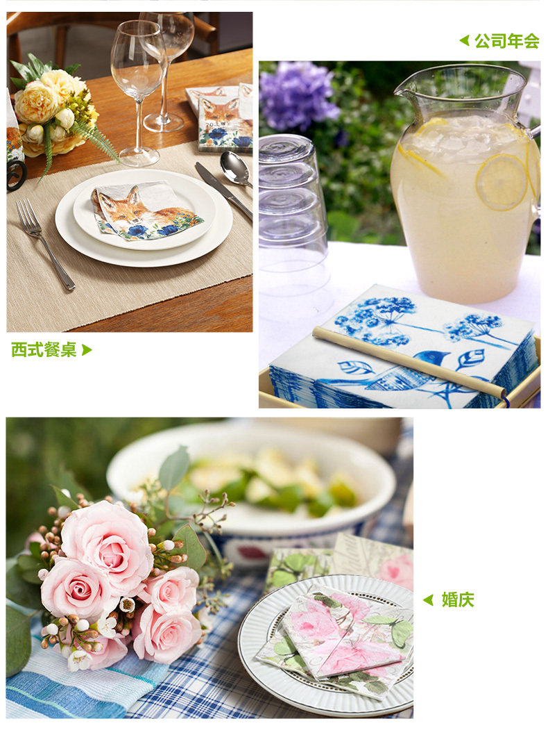 Айву зеленый европейский и американский стиль Трехслойный утолщенный западная пищевая бумага для салфетки для салфетки.