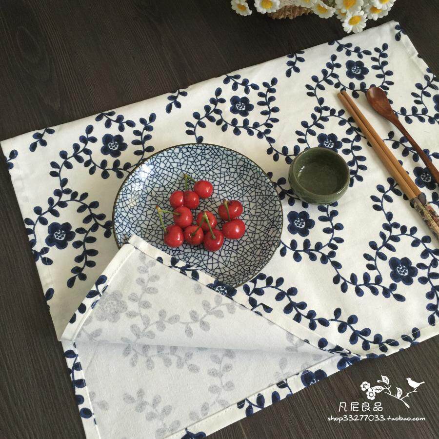 Японский стиль китайский стиль хлопка и льняная штампа горячие салфетки столовые для съемки фона синей и белой лозы