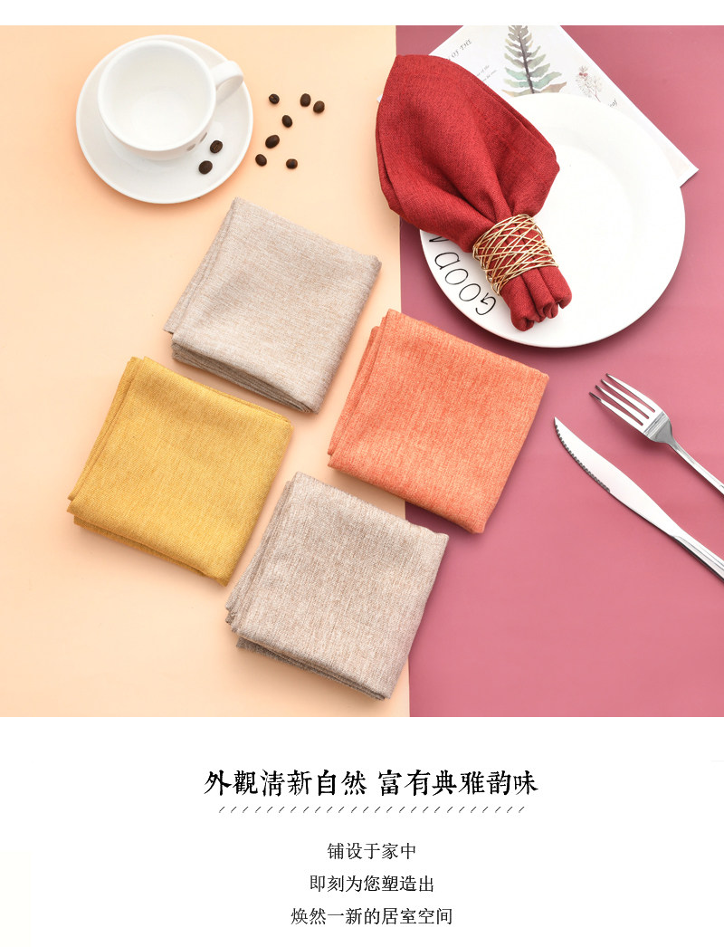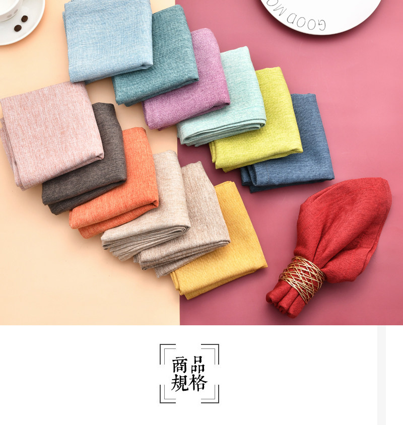 12-летний магазин, восемь цветов, разноцветные хлопчатобумажные и льняные салфетки, складная ткань для отеля, ткань для украшения дома.