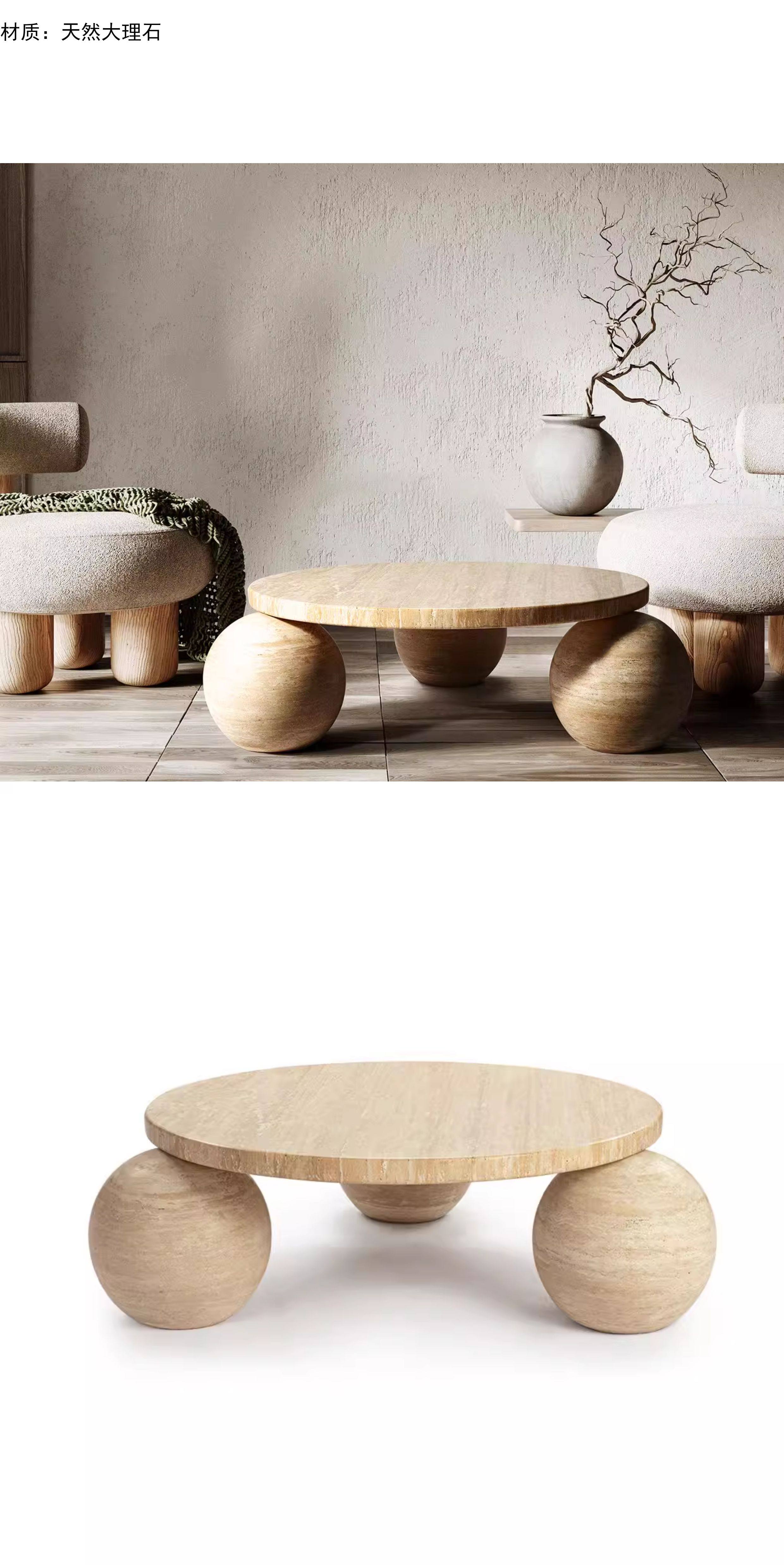 Креативная дизайнерская модель, модель комнаты, резной мрамор, травертин, сферические ножки, журнальный столик для гостиной, журнальный столик на вилле отеля