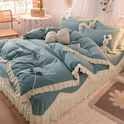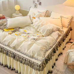 Корейский комплект для принцессы, свежая простыня, хлопковый пододеяльник, 4 предмета, осенний, популярно в интернете, с вышивкой