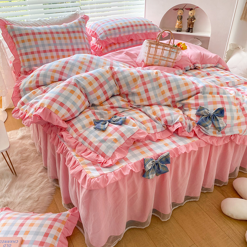 Комплект, простыня для принцессы, свежий пододеяльник, 4 предмета, популярно в интернете, простой и элегантный дизайн, 3 предмета