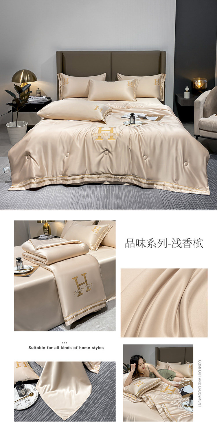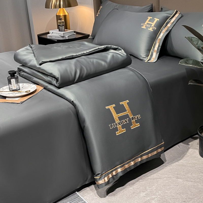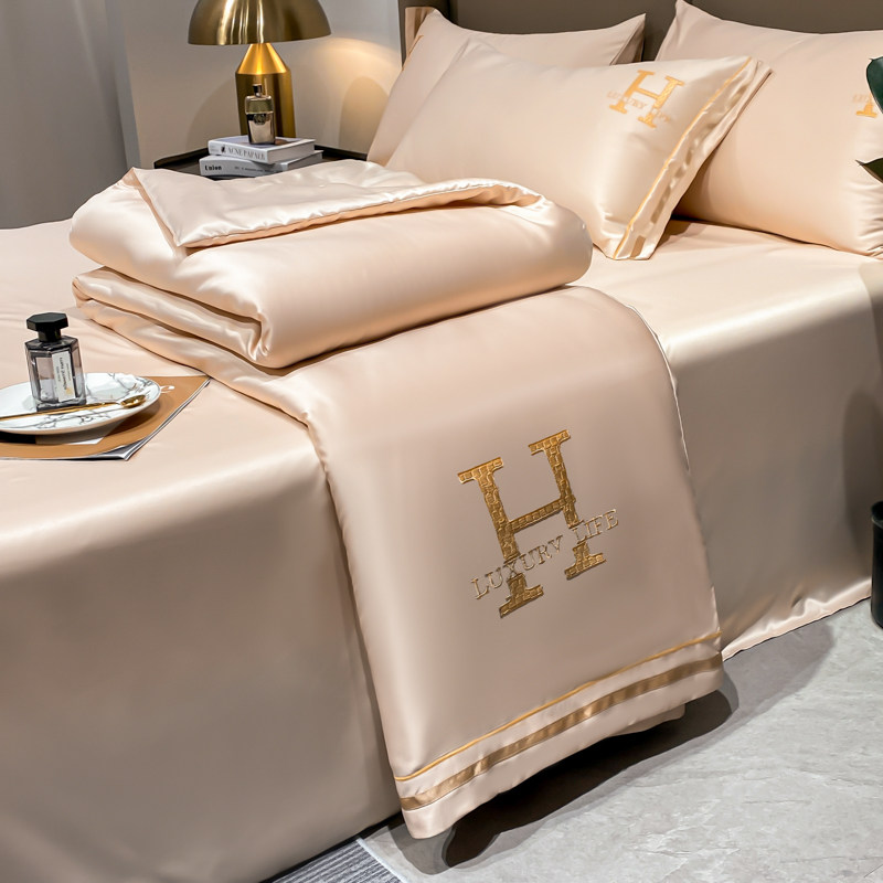 Летний шелковый шелковистый комплект, тонкое прохладное одеяло, скандинавский стиль, можно стирать, 4 предмета