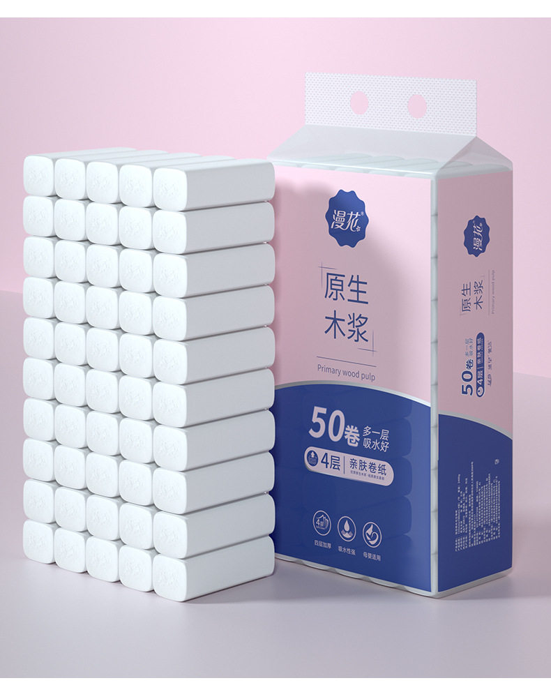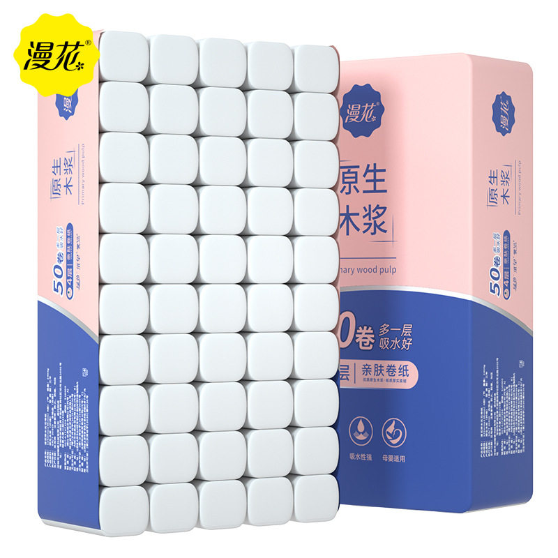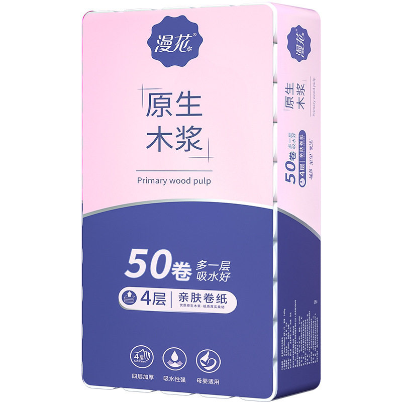 Манхуа -Бесплатная свернутая бумага с четырьмя толстыми туалетной бумагой домашней рулон ткани туалетная бумага туалетная бумага