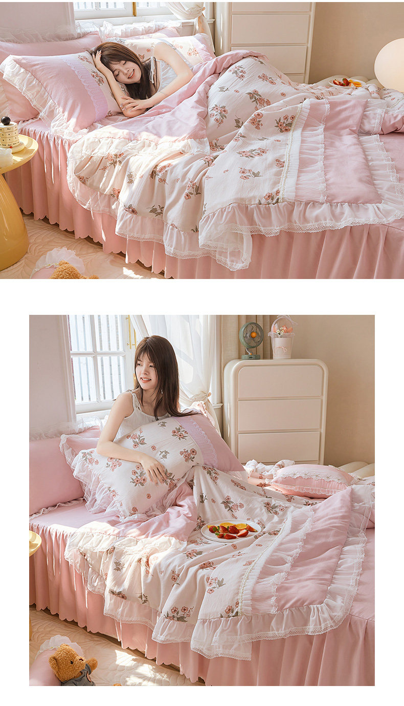 Летнее прохладное одеяло для принцессы, летний тонкий комплект с косичкой, 4 предмета, из хлопка и льна