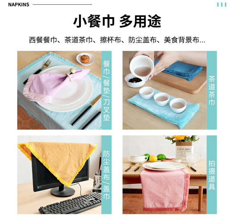 Салфетка дофаминовой серии, тканевая салфетка, домашняя салфетка, салфетка, салфетка с кисточками