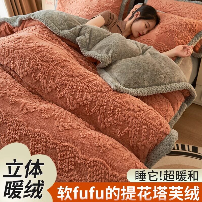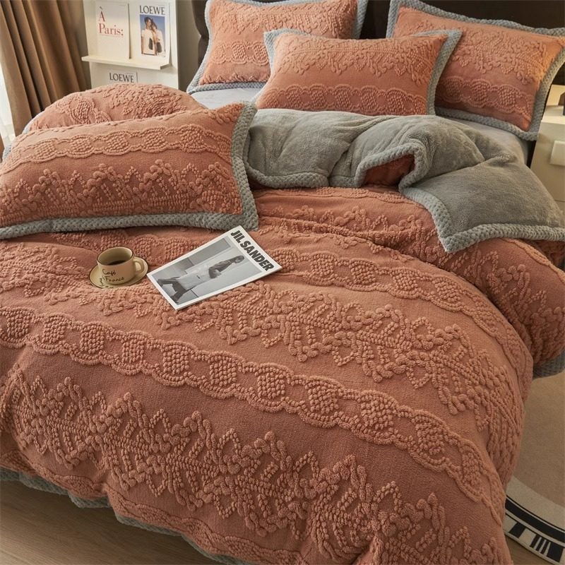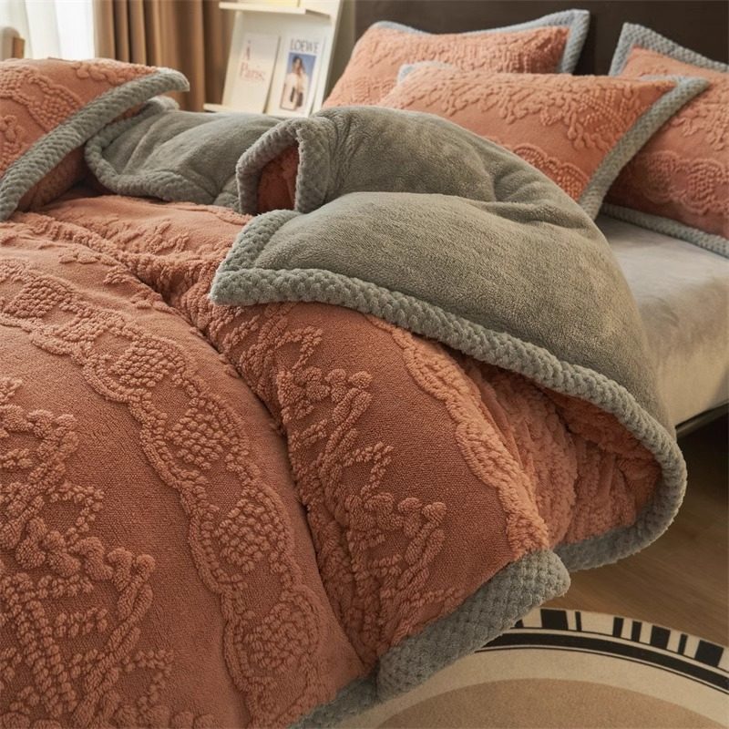 Коралловый фланелевый пододеяльник, утепленная простыня, комплект, увеличенная толщина, 200x, 4 предмета