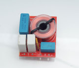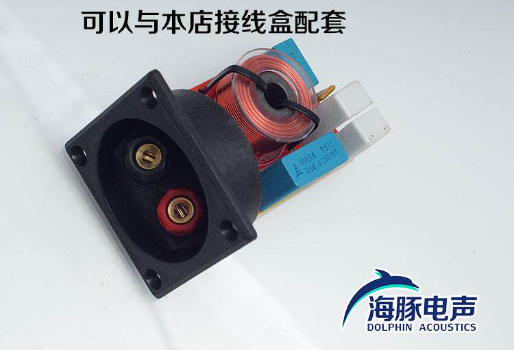 [高音为3.6uF的 蓝色100V西门子无感电容、进口电阻及过流保护器,低音为无氧铜磁心电感,用料讲究,使用非常方便;行家一看就知线路设计是典型的中置音箱及书架箱设计,可以配合本店接线小方盒,搭配合理,实用方便。]