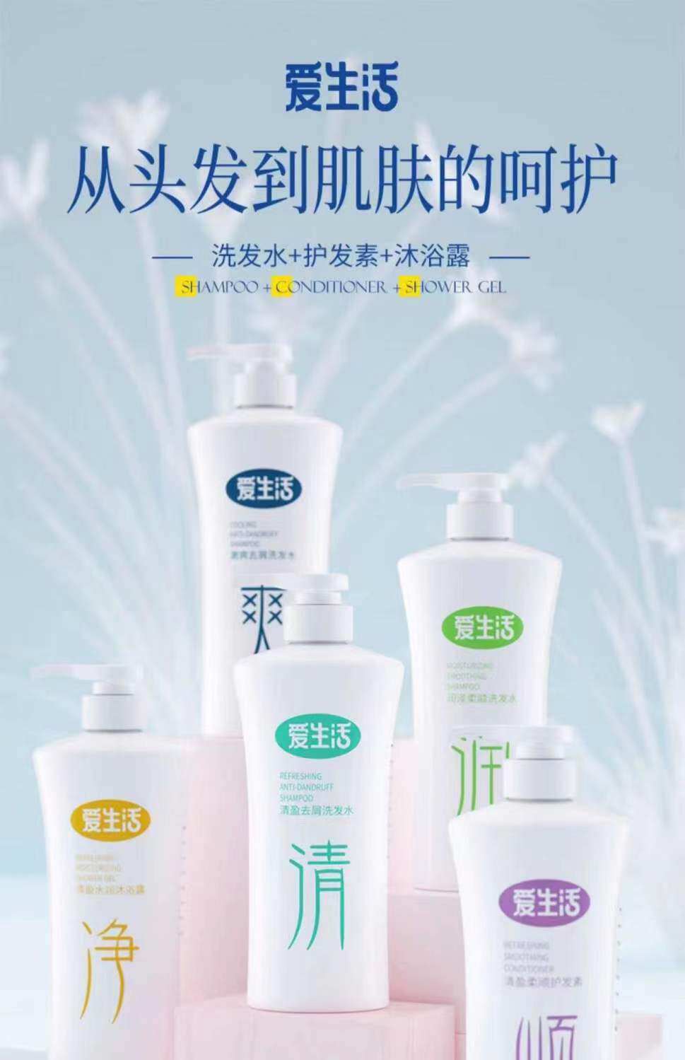 Освежающий шампунь, питательный гель для душа, кондиционер, комплект, удаление перхоти, контроль жирного блеска, против зуда