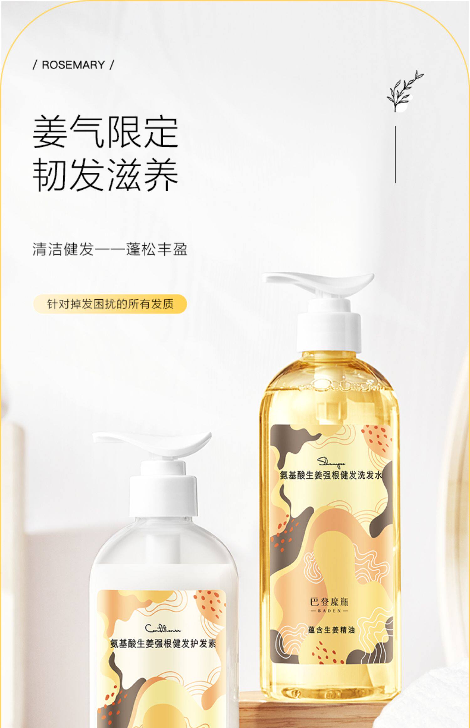 巴登魔瓶 Шампунь с имбирем, кондиционер, комплект без силикона, питательная эссенция, здоровые волосы