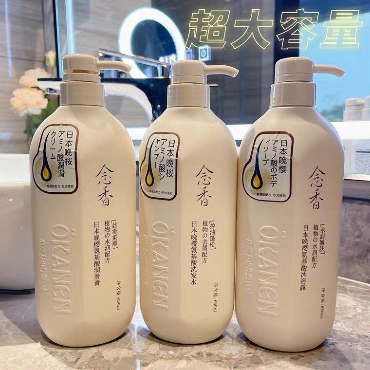 Японский парфюмированный шампунь со стойким ароматом, кондиционер, гель для душа, комплект, долговременный эффект, 3 предмета, контроль жирного блеска, придает объем
