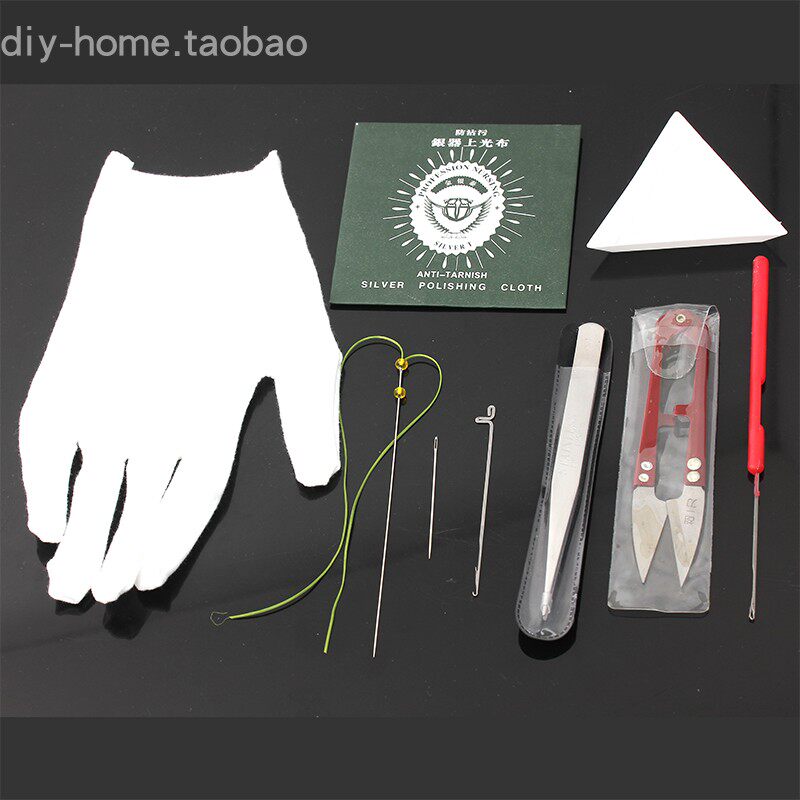 Цвет: Два струнных бусин 2, 2 грубая игла из бисера, 2 цвета иглы, 2 иглы крючков, 1 длинная игла, 1 двойной иглы крючков, 1 кольцо, U - -форма ножницы 1, 1 个 1 1, 1 изгиб тузи, Бусинка 1 тарелка, 1 Серебряная ткань, 10 наборов пальцев, Перчатки, 1 пары, 2 треугольные диски, 1 Потягивание коробки с проводкой