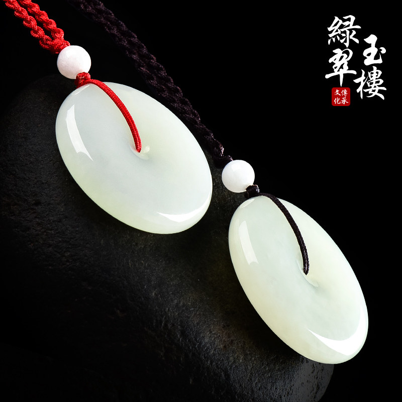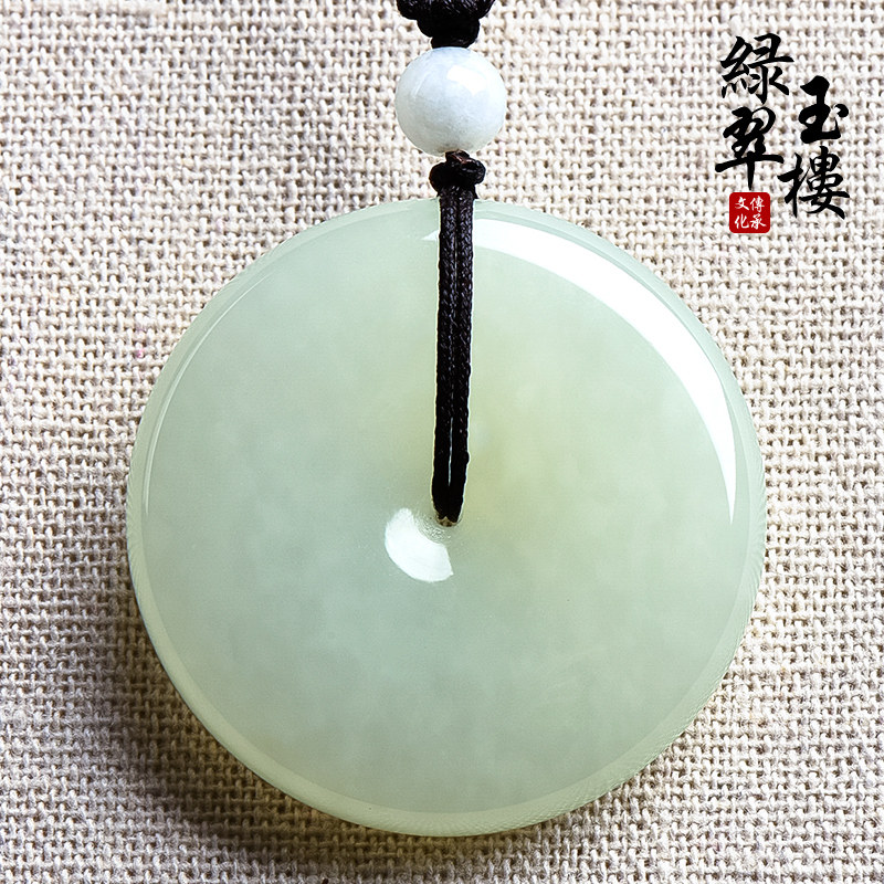 绿翠玉楼 Защитный амулет из белого нефрита, пряжка, натуральная большая подвеска подходит для мужчин и женщин из нефрита