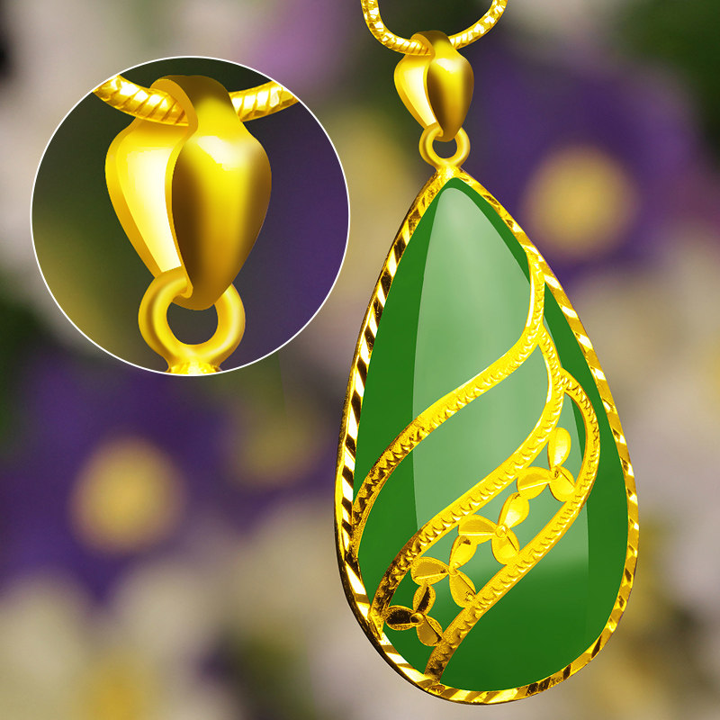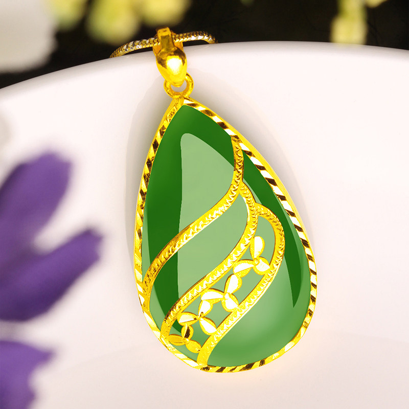 Золотое ювелирное украшение, яшма, подвеска, золотая золотая вода в форме капли из нефрита, ожерелье, женский стиль