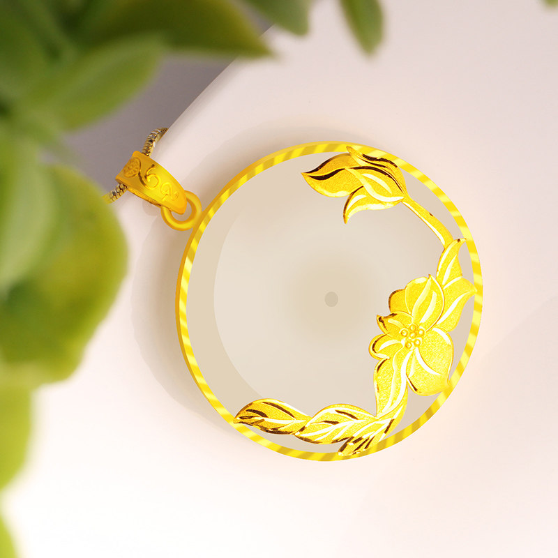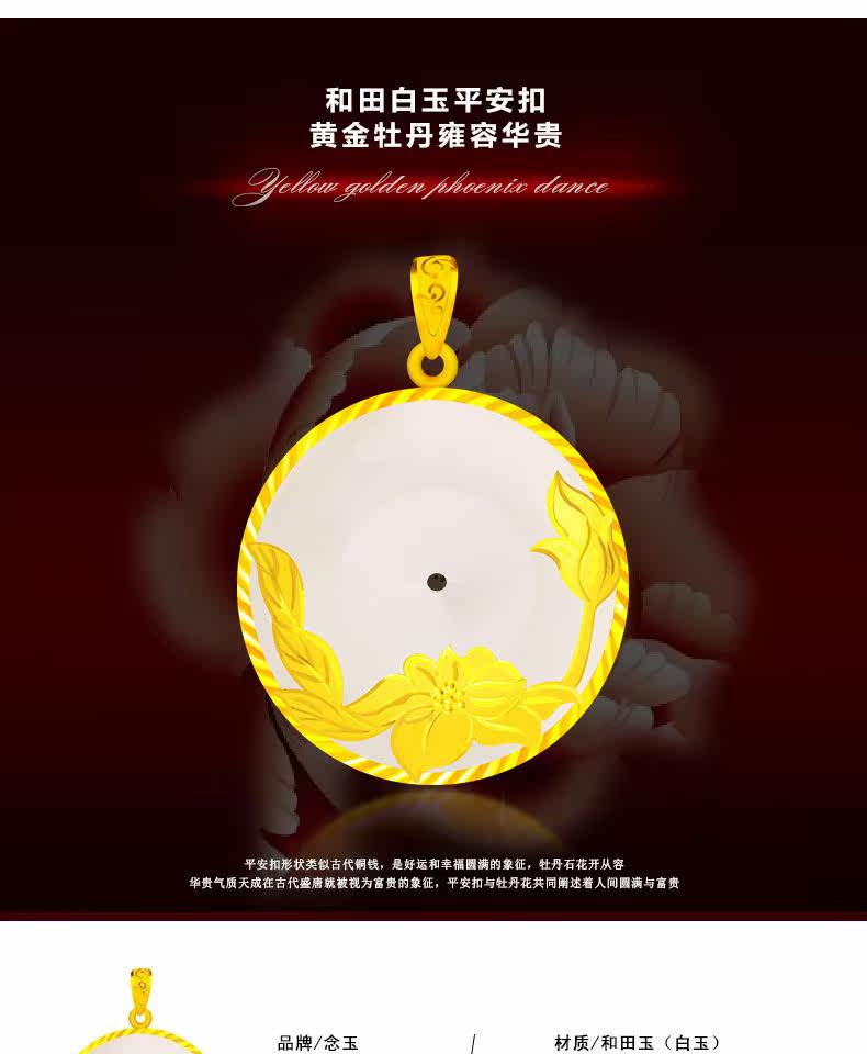念玉珠宝 Золотая подвеска из нефрита, защитный амулет, пряжка из белого нефрита, женский стиль