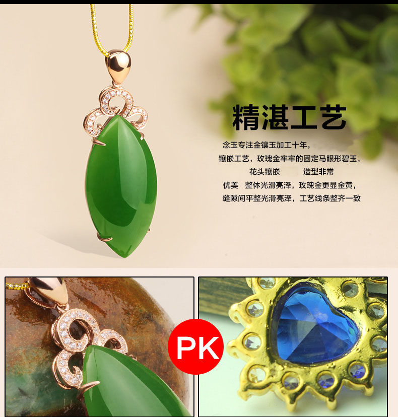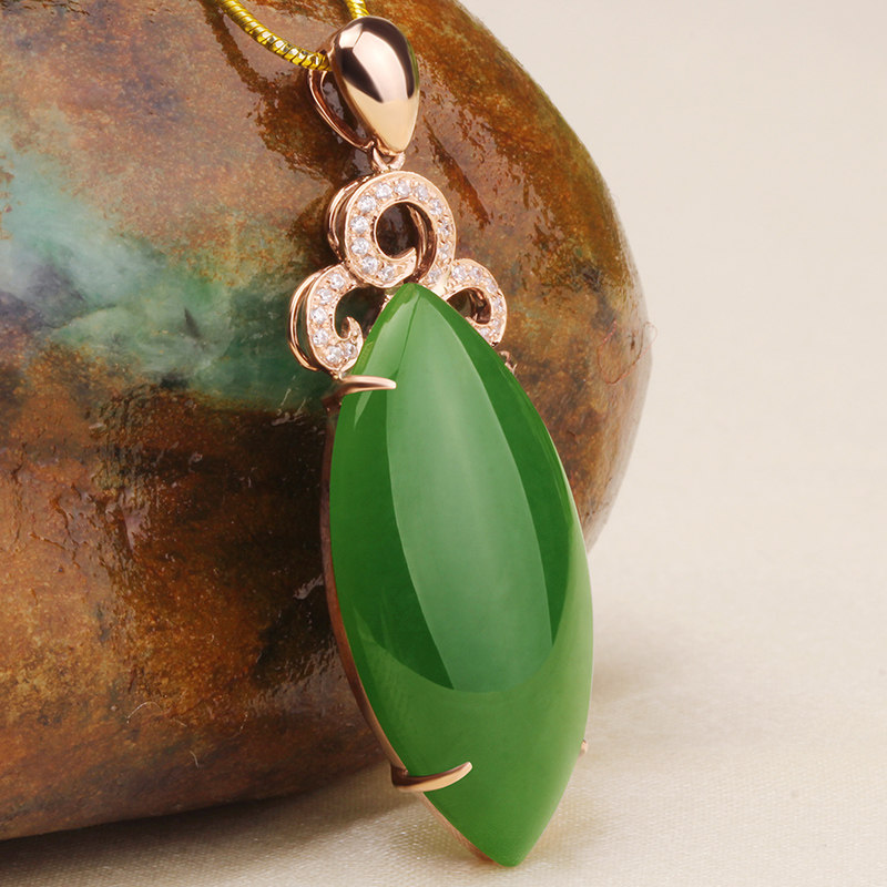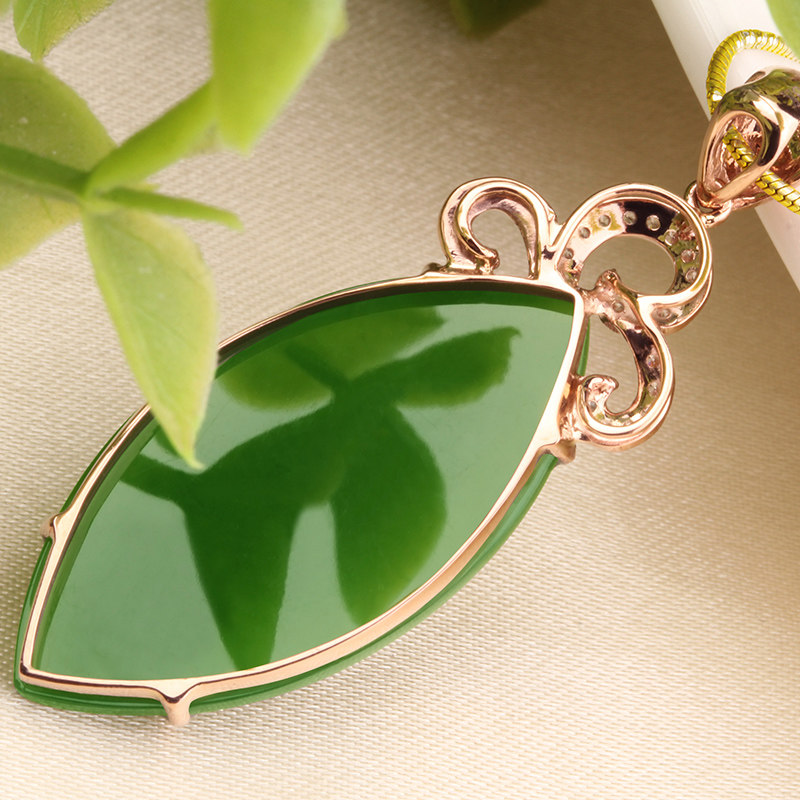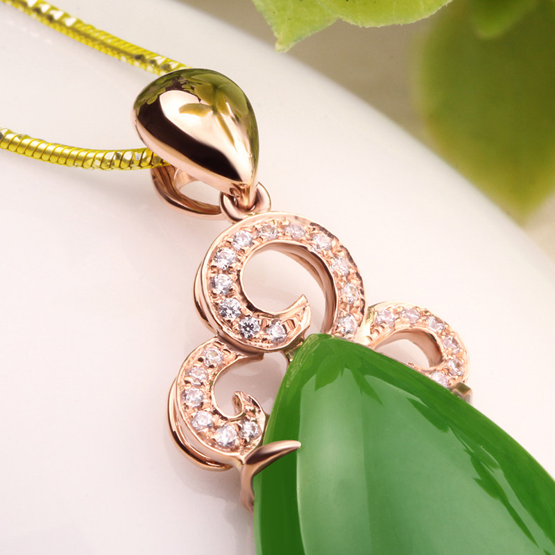 念玉珠宝 Подвеска, золотая инкрустация камня из округа Хотан, яшма, 18 карат, розовое золото, женский стиль