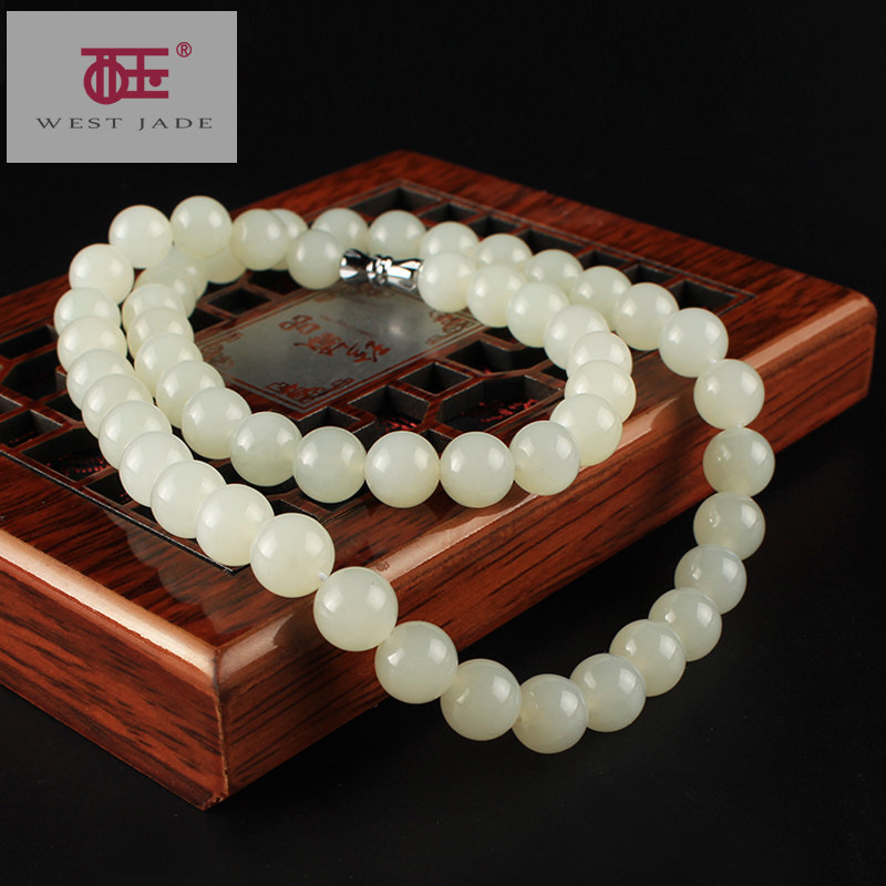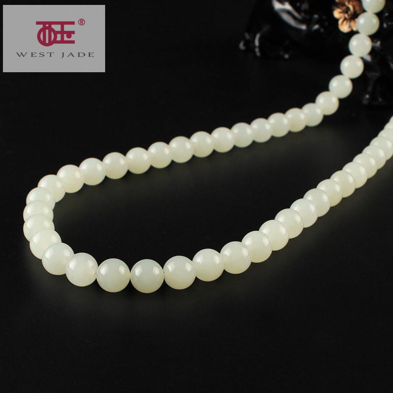 西玉 Ожерелье из белого нефрита, четки из круглых бусин, украшение-шарик, подвеска, 54 шт