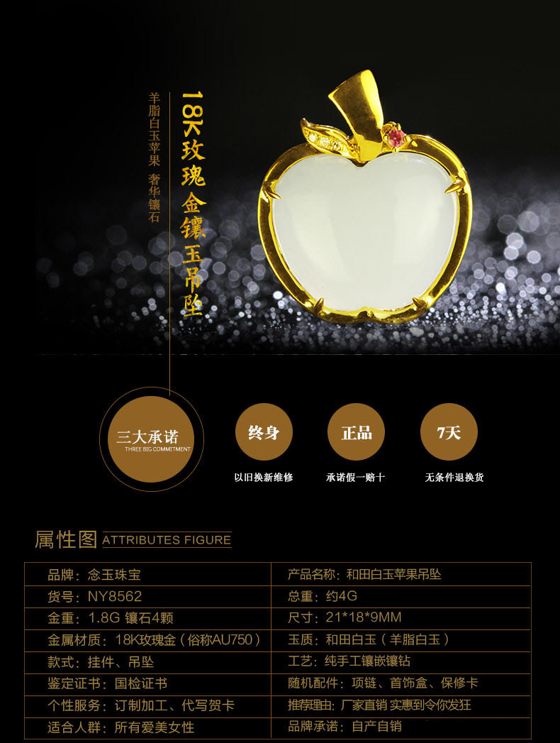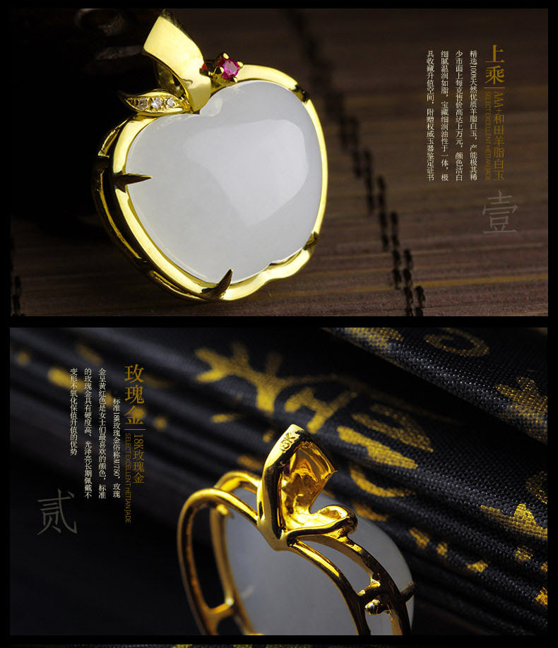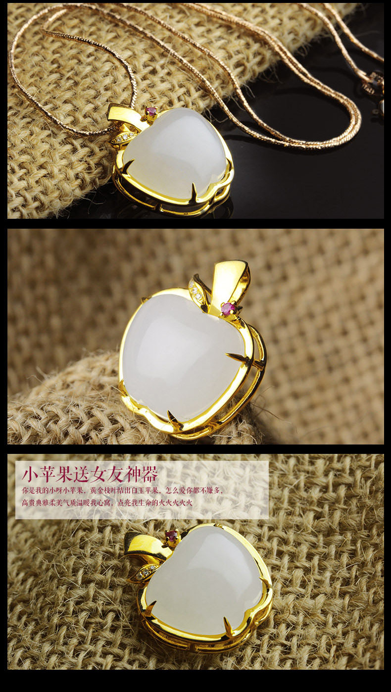 Apple, ювелирное украшение, подвеска из нефрита, ожерелье из белого нефрита, 18 карат