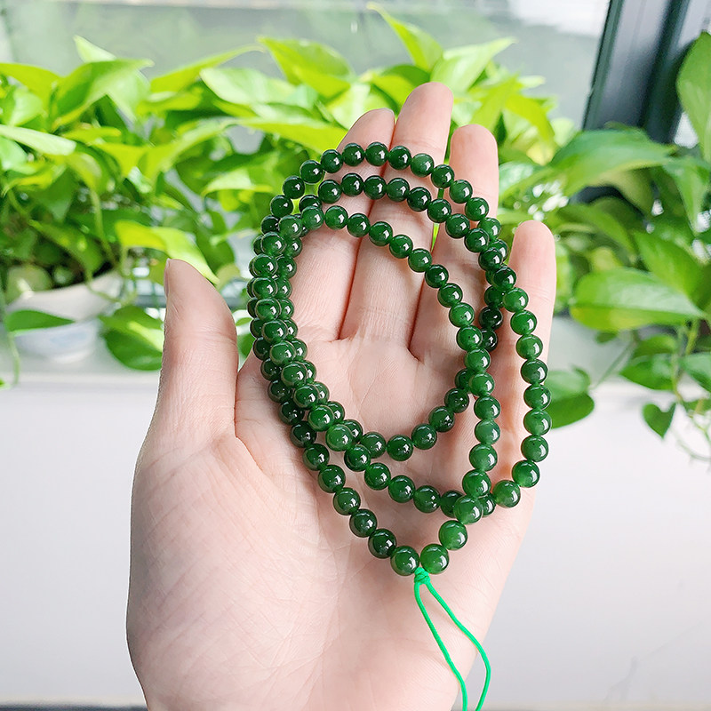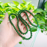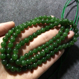 Hetian Jade Jasper, Spinach Green, структура трудно увидеть под естественным светом, есть черные пятна, полные зеленых голов, слегка черные пятна в мясе, хорошо -пропорциональные бусы, круглые и полные, и нежный нефрит.