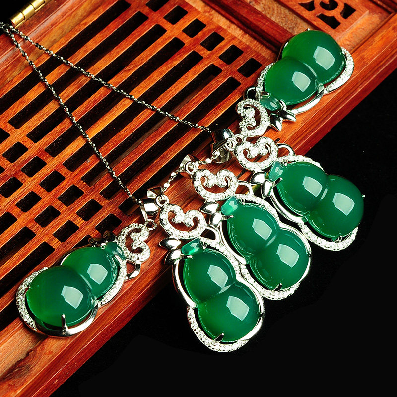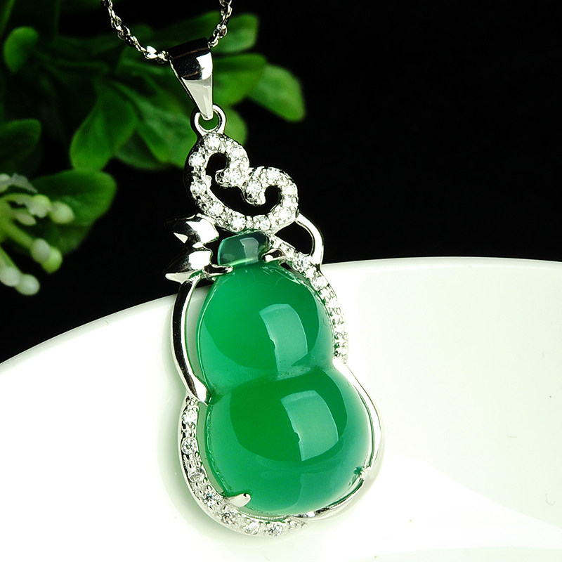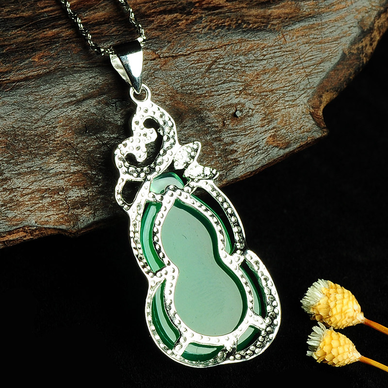 Ожерелье, подвеска, натуральная инкрустация камня из нефрита, женский стиль, серебро 925 пробы