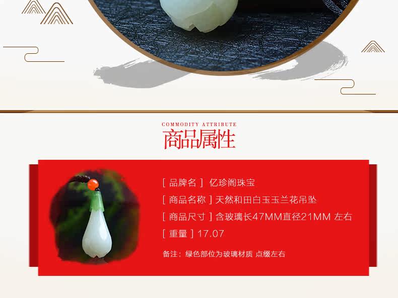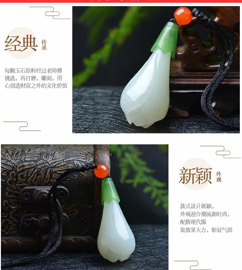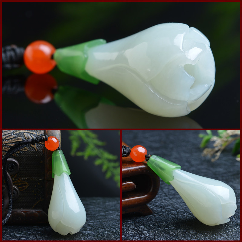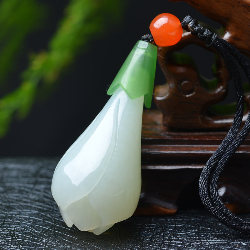 亿珍阁 Натуральная подвеска из белого нефрита подходит для мужчин и женщин, орхидея