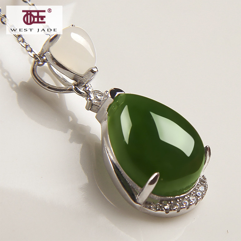西玉 Яшма в форме капли из белого нефрита, серебро 925 пробы
