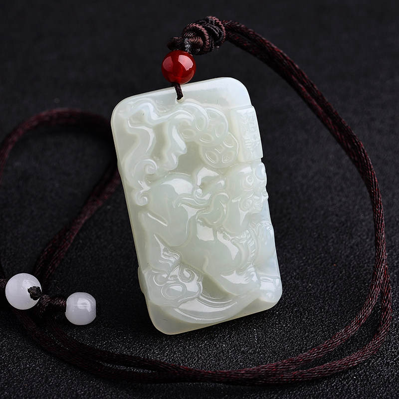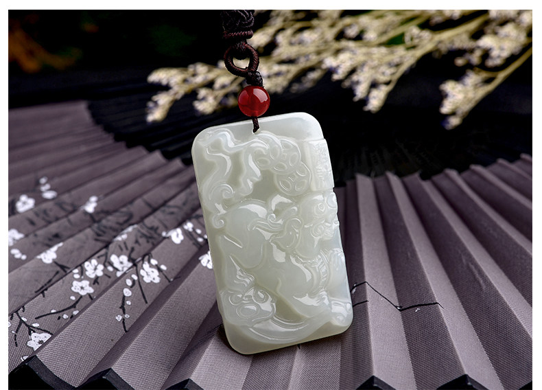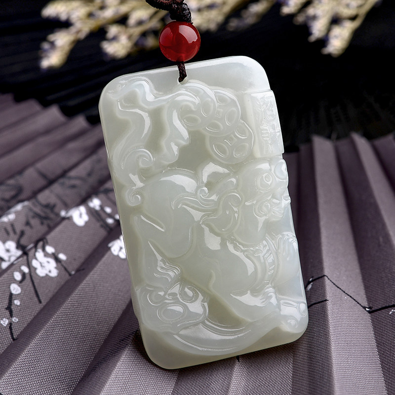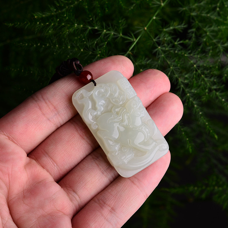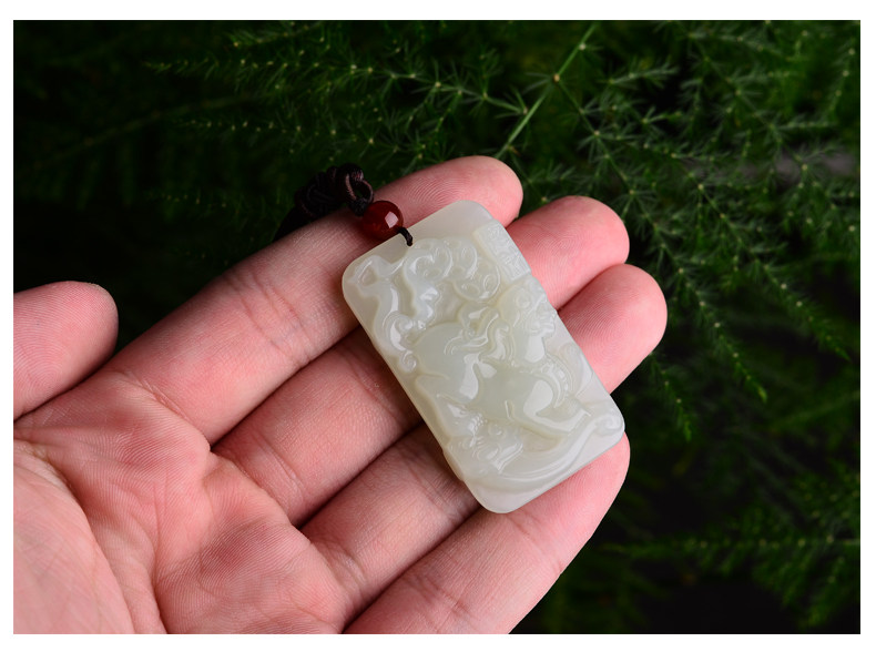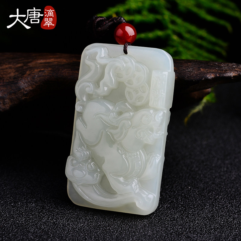 大唐滴翠 Двусторонная белая подвеска из белого нефрита