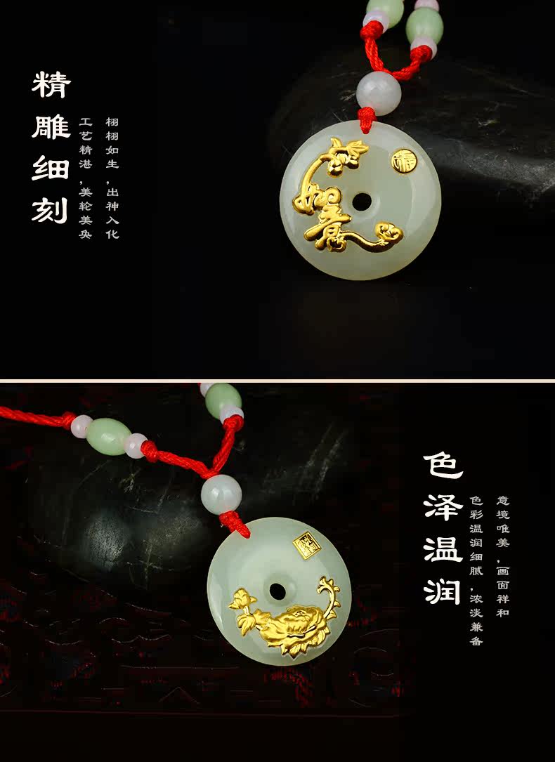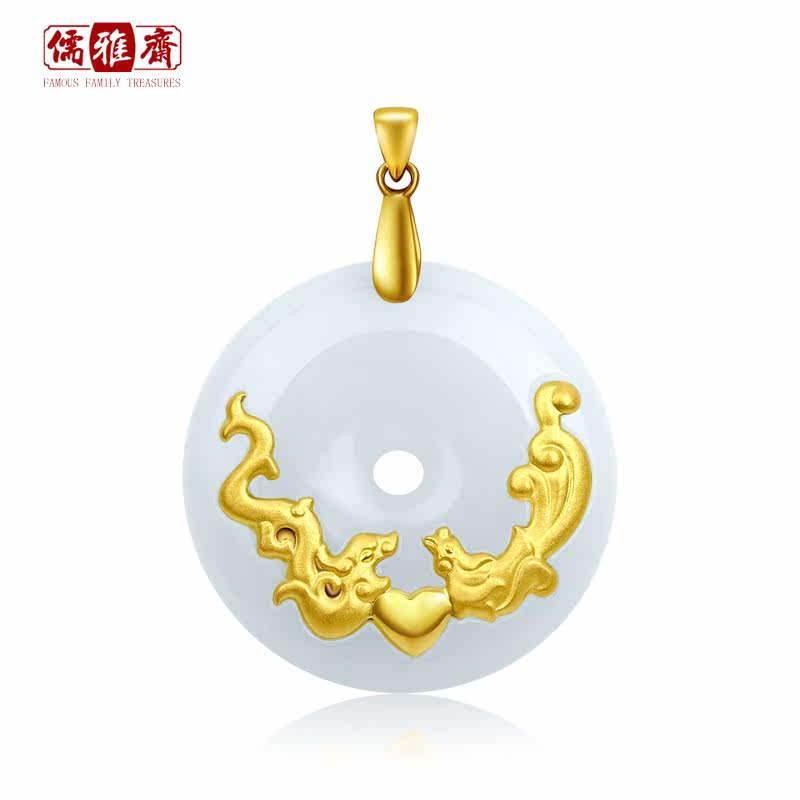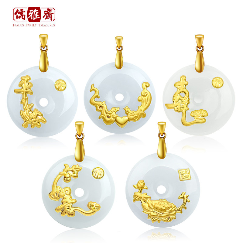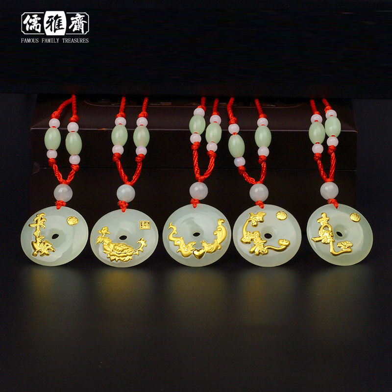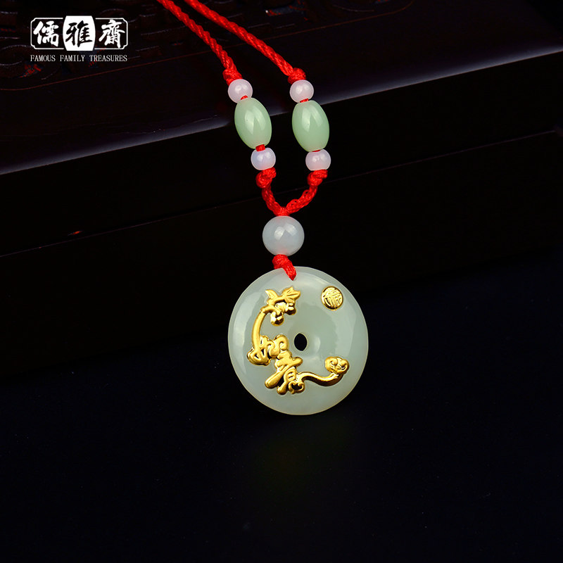 儒雅斋 Защитный амулет из нефрита, пряжка, золотая подвеска подходит для мужчин и женщин, женский стиль
